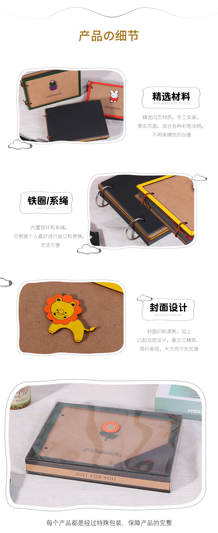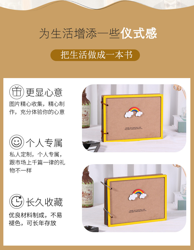8-inch creative commemorative diy cartoon pattern children’s wooden cover album