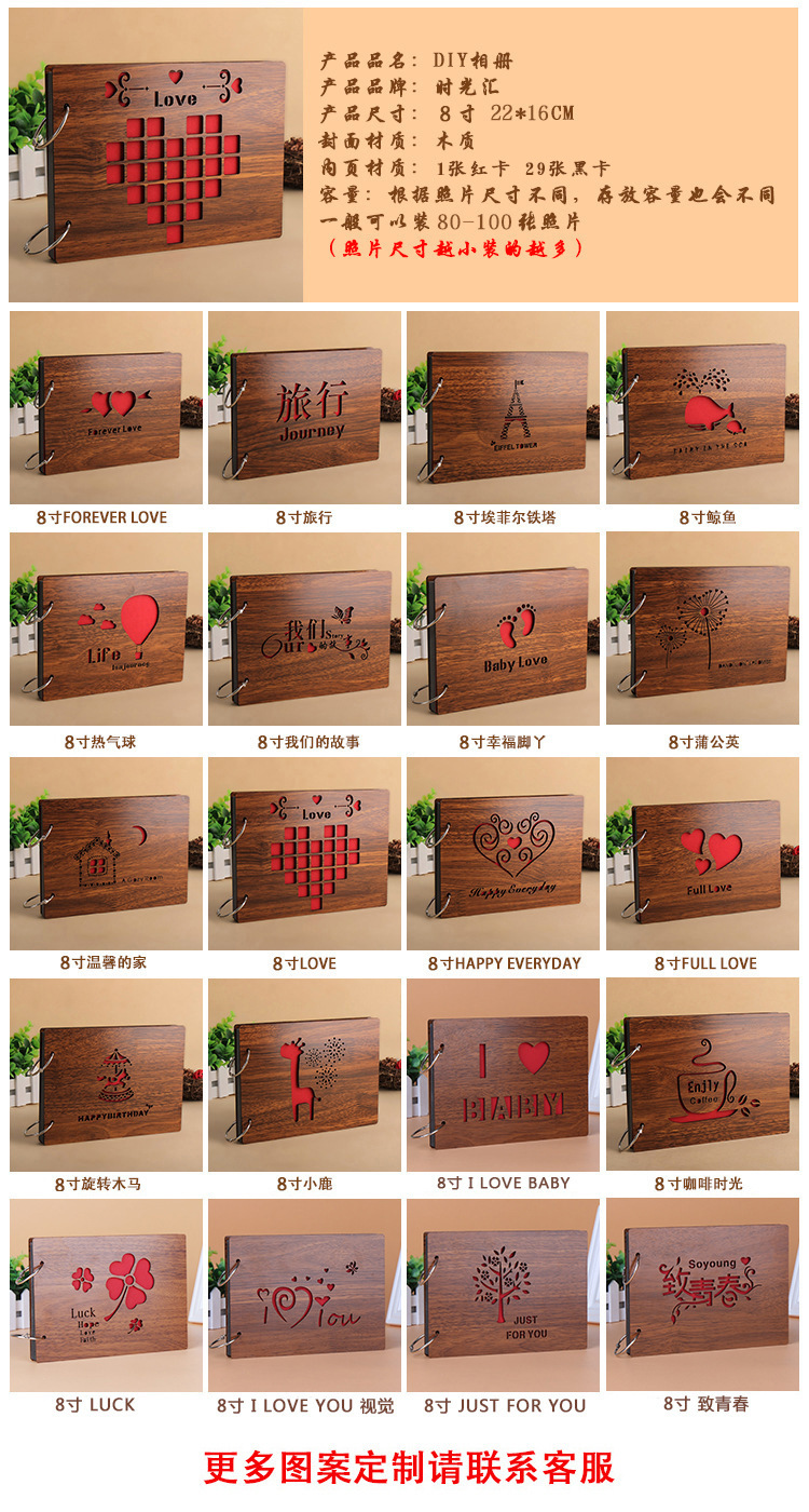 8-inch DIY wooden cartoon album creative children’s growth commemoration customized logo